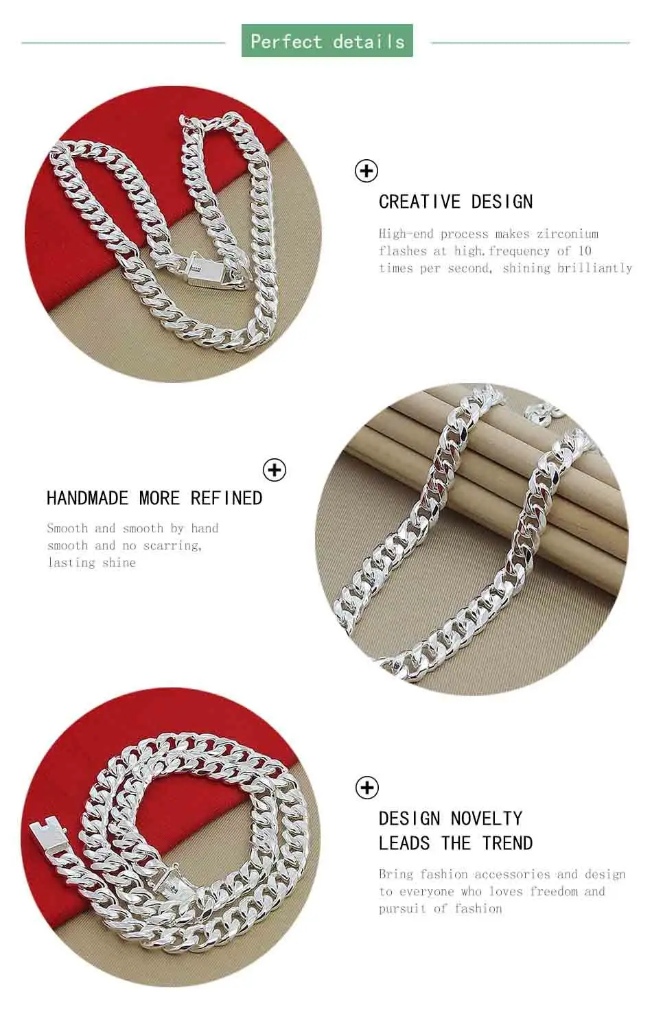 10MM Men Necklace Chain 925 Silver Necklaces Fashion Jewelry Accessories